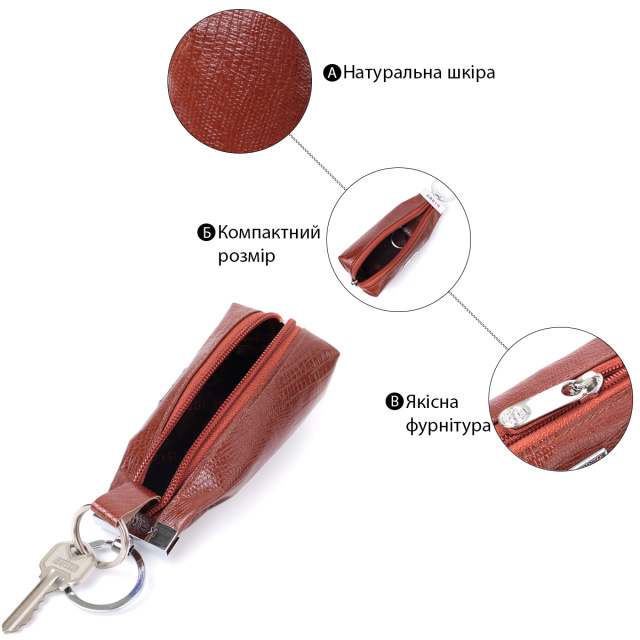 Практичная ключница из натуральной кожи с тиснением под рептилию. Все материалы из которых выполнено изделие кожа, фурнитура, подкладка - высокого качества с повышенными показателями стойкости к различному износу. Аксессуар упакован в фирменную коробку, будет отличным подарком для любой женщины.