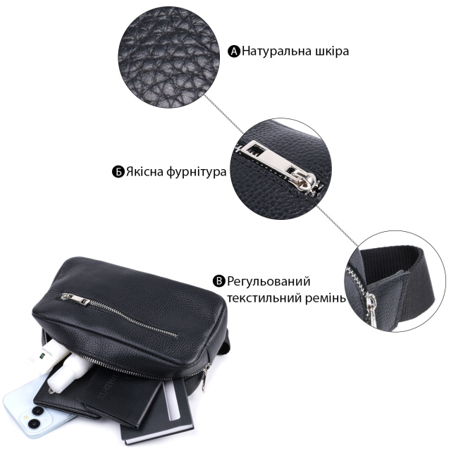 Стильная мужская сумка бананка из натуральной зернистой кожи высокого качества. Бананка – одна из самых популярных моделей среди наших клиентов. Внутренние отделения позволяют хранить небольшие предметы повседневного использования в пределах досягаемости руки, такие как ключи, очки, мобильный телефон, визитница, картхолдер и личные вещи. Держите свои ценные вещи под рукой, сохраняя модный вид. В сумке использована качественная фурнитура, ремешок закрывается на фастекс.Такой аксессуар станет прекрасным подарком для близкого человека.