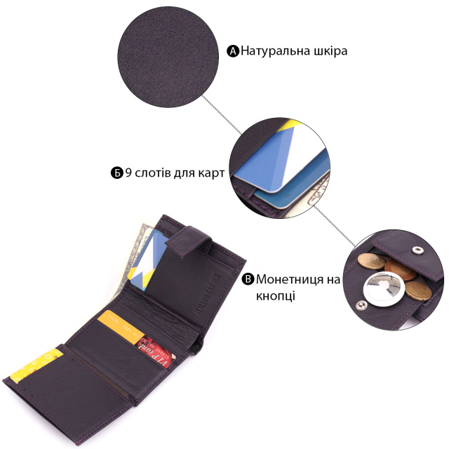- 9 отделений для пластиковых карточек, одно из них прозрачное;