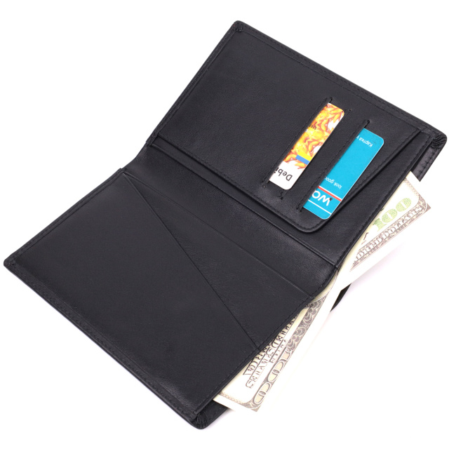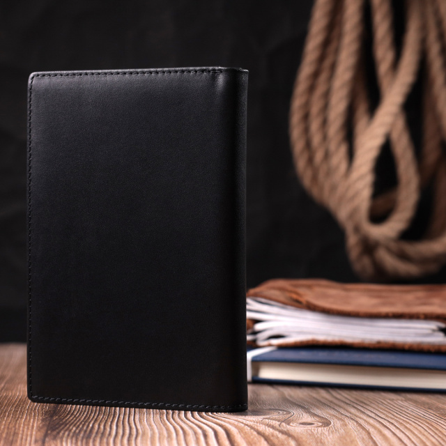Лаконичное мужское портмоне на одно отделение для купюр. Аксессуар закрывается пополам, без застежки. Имеет приятную гладкую и матовую фактуру. Материал изготовления – натуральная кожа высокого качества исполнения.