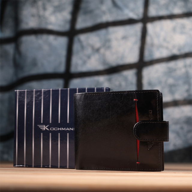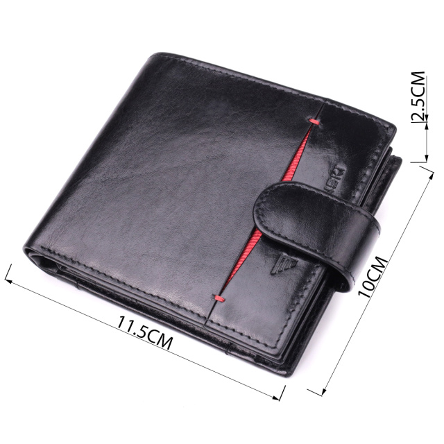 Эксклюзивный мужской кошелек из качественной натуральной кожи с красным акцентом на лицевой стороне. Аксессуар удобного размера, аккуратно пошит, все строчки ровные, имеет практичный функционал. Такой кошелек сочетает в себе стиль, функционал и неповторимый стиль, идеально подходящий для современного мужчины любого возраста, который ценит удобство и стиль в одном изделии.