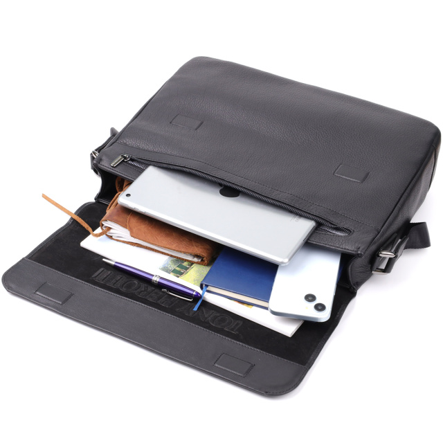 Мужской кожаный портфель от итальянского бренда Tony Perotti выполнен из натуральной зернистой кожи и сочетает в себе элегантный дизайн и функциональность. Вместительное отделение с отсеком для ноутбука, дополнительные карманы и удобный ремень делают аксессуар идеальным для работы и повседневного использования. Металлический логотип и качественная фурнитура подчеркивают оригинальность и статус владельца, а продуманная организация пространства обеспечивает максимальный комфорт.