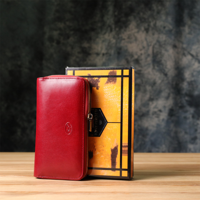 Женский кожаный кошелек красного цвета — элегантный и практичный аксессуар для каждой женщины. Три отделения для купюр, монетница, дополнительные карманы и слоты для карт обеспечивают удобную организацию и функциональность. Яркий цвет в сочетании с лаконичным дизайном подчеркивает стиль и индивидуальность, а высокое качество материалов делает изделие надежным и долговечным.