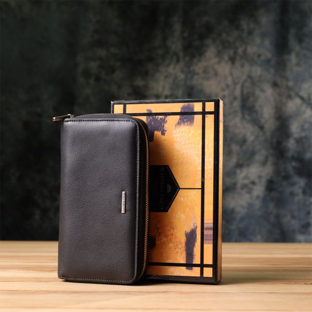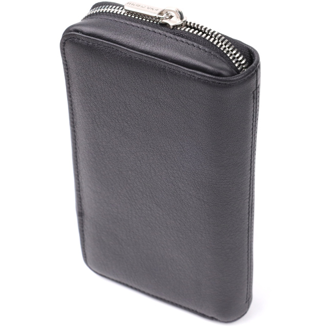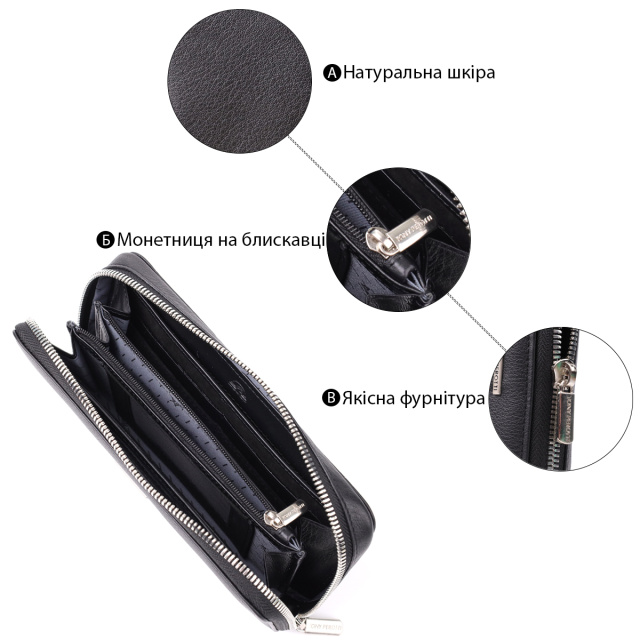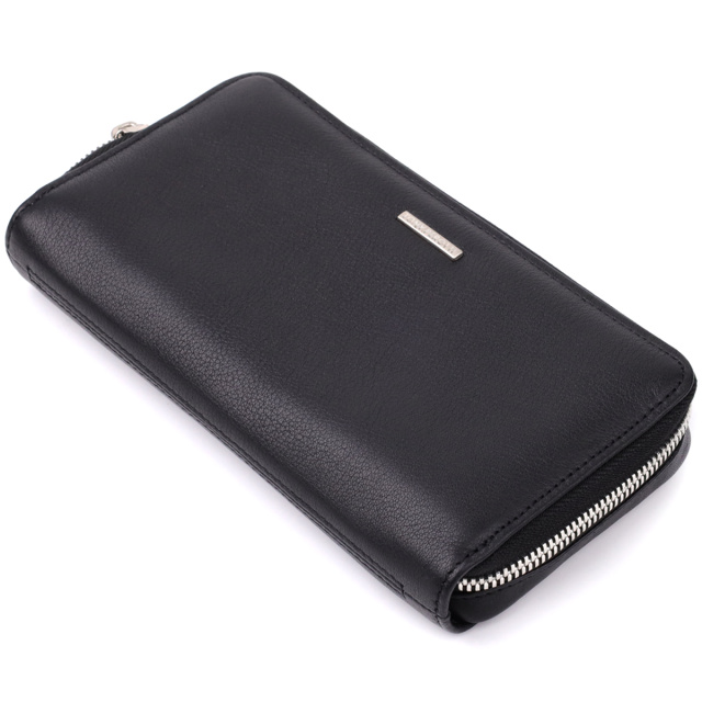Женский кожаный кошелек из натуральной зернистой кожи черного цвета — стильный и практичный аксессуар на каждый день. Вместительные отделения для купюр, монетница, карманы и слоты для карт обеспечивают удобную организацию. Лаконичный дизайн делает модель универсальной, а качественные материалы гарантируют долговечность и элегантный внешний вид.