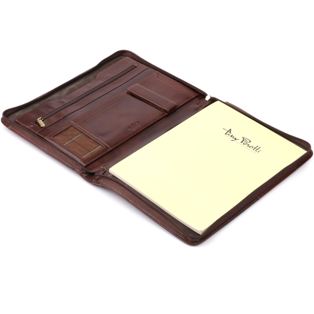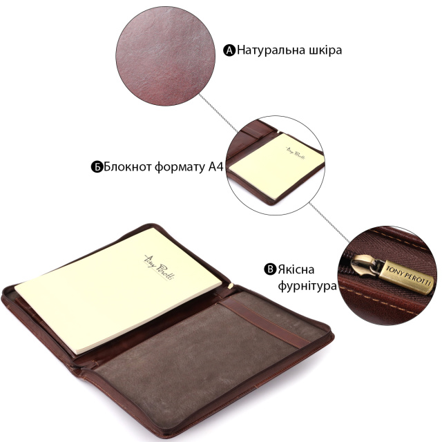 Элегантная кожаная папка с блокнотом от итальянского бренда Tony Perotti — стильное и функциональное решение для работы и деловых встреч. Изделие выполнено из натуральной гладкой кожи, оснащено продуманными внутренними отделениями для хранения документов, ручек и карточек, а сменный блокнот делает аксессуар универсальным и практичным. Лаконичный дизайн, тиснение бренда и итальянское качество подчеркивают оригинальность и статус владельца, а также делают папку отличным подарком.