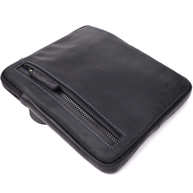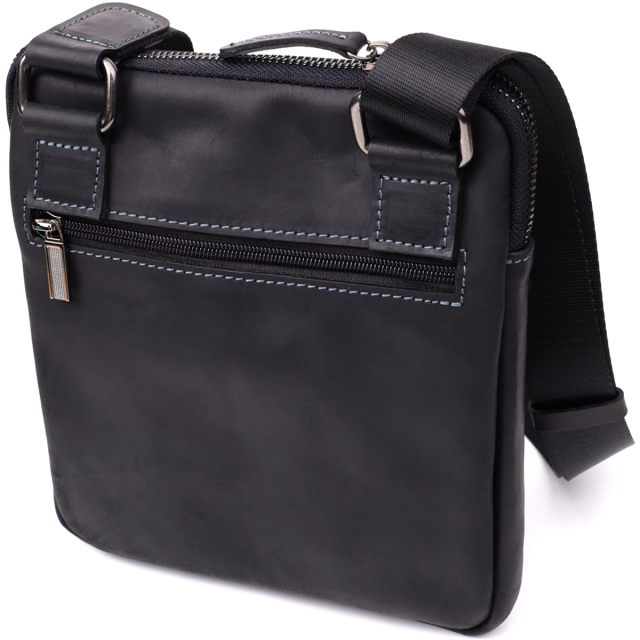 Компактная мужская вертикальная сумка SHVIGEL выполнена из натуральной винтажной кожи с декоративной синей строчкой по контуру. Лаконичный дизайн в сочетании с функциональной организацией пространства делает её удобным аксессуаром для повседневного использования.
