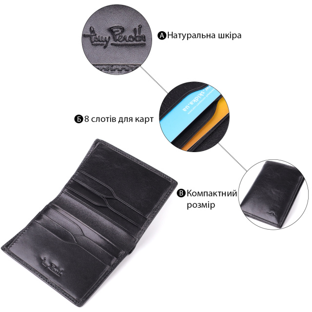 Компактное портмоне Tony Perotti в два сложения сочетает компактность, функциональность и премиальный стиль. Продуманная внутренняя организация позволяет удобно хранить купюры, монету и карты. Фирменная брендированная фурнитура и тисненный логотип на лицевой и внутренней сторонах подчёркивают высокое качество и элегантность изделия.