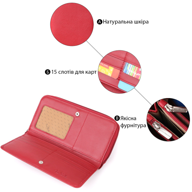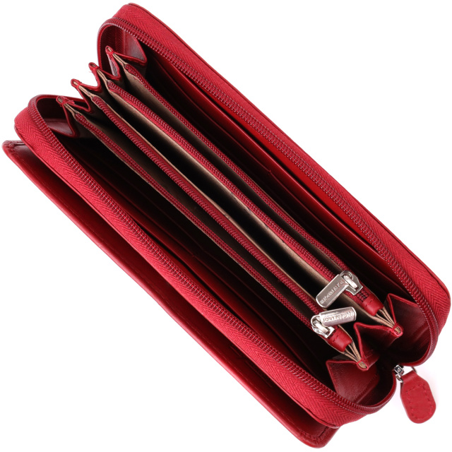 Красное кожаное портмоне Tony Perotti сочетает элегантность и функциональность. Продуманная внутренняя организация позволяет удобно хранить купюры, мелочь, карты и документы, обеспечивая быстрый доступ ко всему необходимому. Натуральная кожа высшего качества подчёркивает премиальный характер изделия и делает портмоне долговечным и стильным аксессуаром.