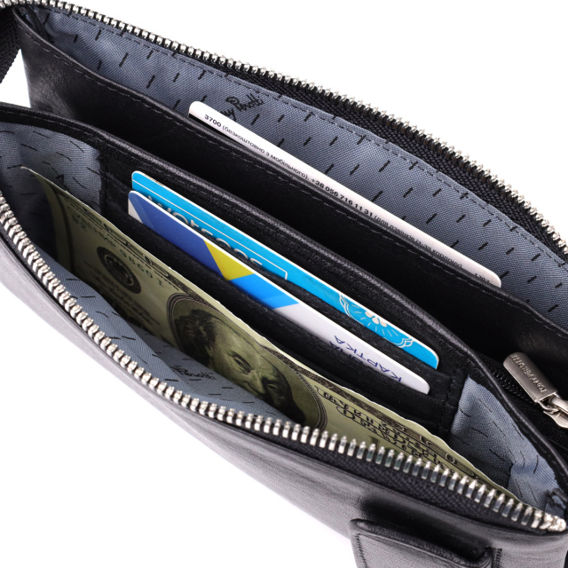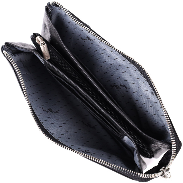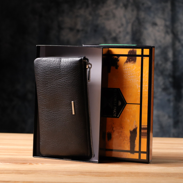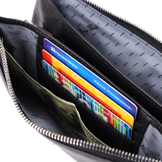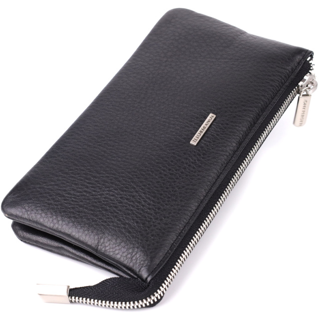 Черное кожаное портмоне-клатч Tony Perotti сочетает элегантный дизайн и продуманную организацию внутреннего пространства. Вместительное основное отделение и дополнительные карманы обеспечивают удобное хранение купюр, монет, карт и телефона. Натуральная кожа подчёркивает премиальный характер изделия, делая его долговечным и стильным аксессуаром.