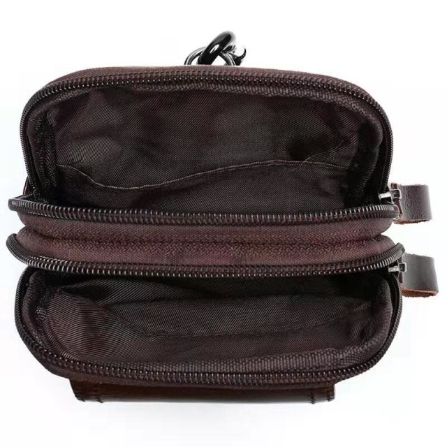 Компактная и функциональна сумка для мужчин. Ее особенностью является то, что вы можете носить ее на ремне, на плече в руках или как бананку. Аксессуар выполнен из натуральной кожи мягкой и приятной на ощупь. Внутри сумки текстильная подкладка коричневого цвета. Регулируемый ремешок съемный и дополнительный карабин обеспечат вам удобство и комфорт с такой сумкой. Модель идеально подойдет в поездку или для тех, кто много времени проводит за рулем. Такая модель способна заменить барсетку и при этом меньше весит. Сумка будет прекрасным подарком для близкого человека. Аксессуар упакован в тканевой мешок.