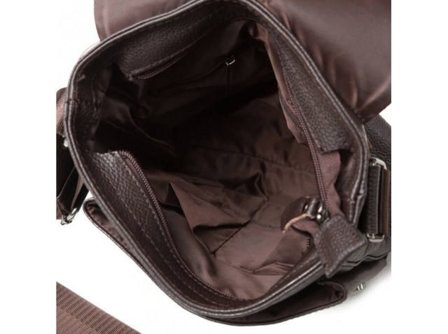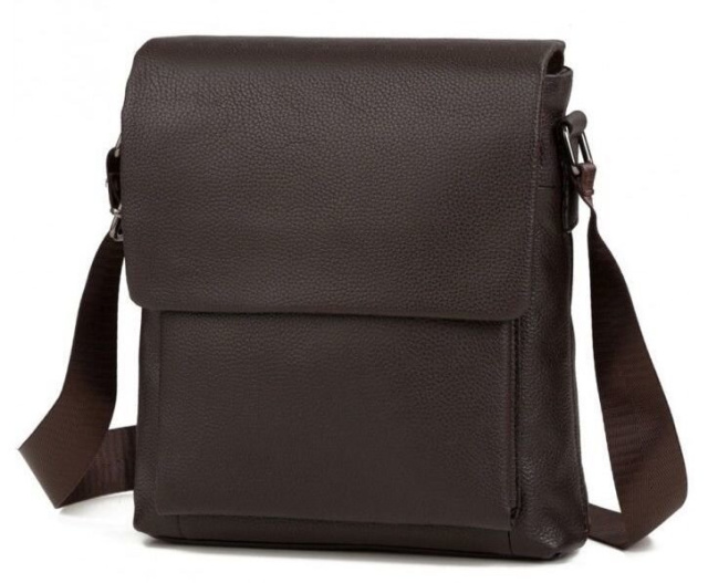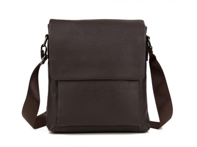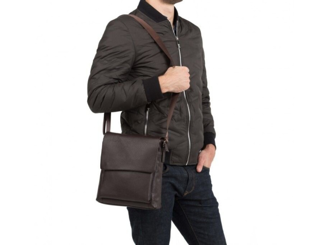 Прочная коричневая кожаная сумка из натуральной зернистой кожи, больше известной как «флотар». Аксессуар оборудован надежной металлической фурнитурой и прочным текстилем для внутренней подкладки. В такую сумку легко поместятся документы, кошелек, телефон, планшет, а также все необходимые вещи.