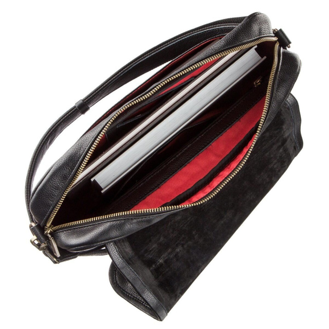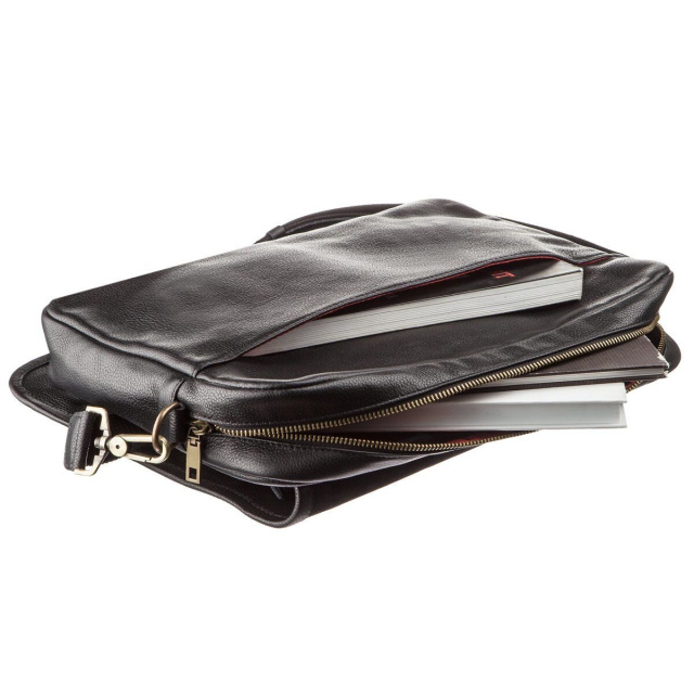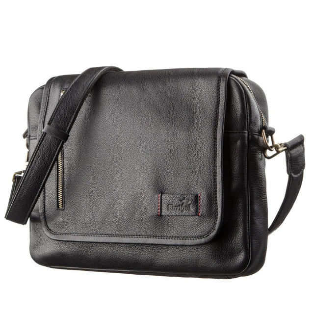 Солидная сумка для работы или учебы через плечо. Аксессуар выполнен из натуральной кожи типа флотар, которая популярна своей износостойкостью и неприхотливостью в уходе. На такой коже не видно царапин и потертостей и она является достаточно практично. В аксессуар вы сможете поместить планшет или небольшой ноутбук. При желании ручку вы можете снять. Сумка также дополнена качественной фурнитурой из крепкого металла. Ручка на плечо текстильная с кожаной вставкой, что подчеркивает высокое качество изделия. На лицевой стороне аксессуара тисненый логотип бренда с ровной красной строчкой.