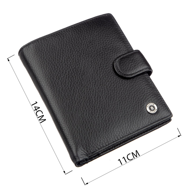 Превосходное мужское портмоне из натуральной кожи высокого качества. Сделан в элегантном черном стиле для деловых и уверенных в себе мужчин. Имеет много различных отделений для купюр, монет и прочих ценностей. Также есть много отделений для пластиковых карт и визиток. Ну и очень важным элементов есть наличие прозрачных вкладышей для документов, в том числе и для страховки или идентификационного кода. Такое портмоне вполне может заменить небольшую сумку или борсетку, поэтому данное изделие станет прекрасным приобретением. Упакован кошелек в фирменную коробку.