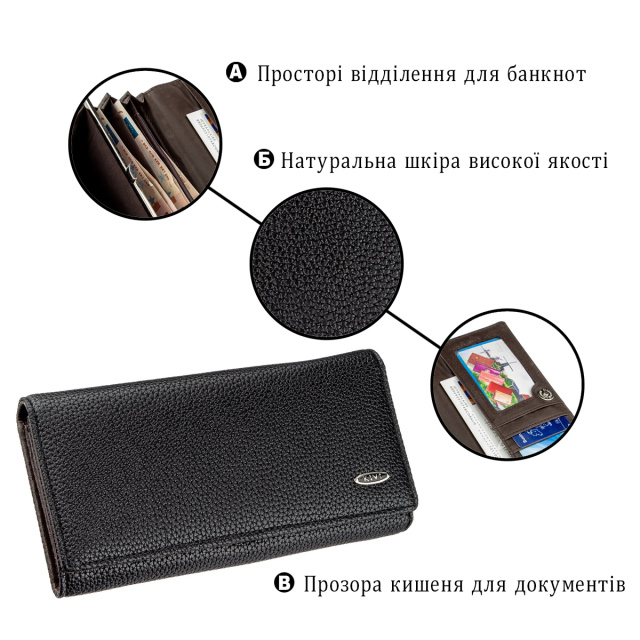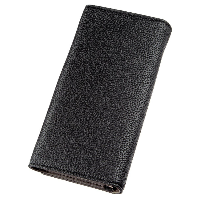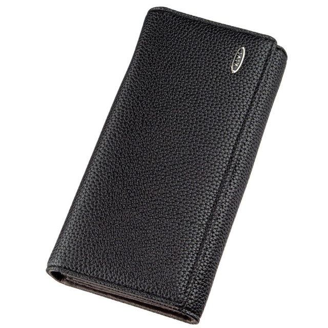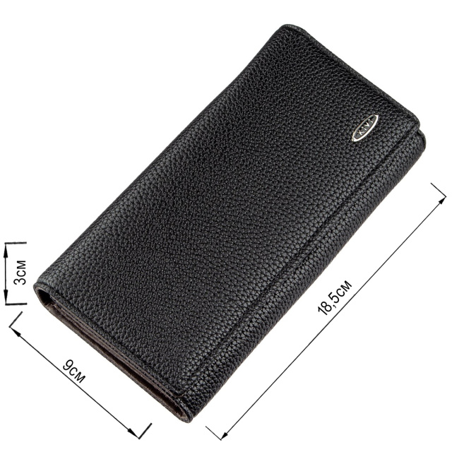 Представленный кошелек выполнен в классическом черном цвете с обширным функционалом. В модели выведен один отдельный блок с ячейками для кредиток. Все ячейки идеальной подобраны, чтобы зафиксировать вашу карточку. Просторные отделы для купюр и классическая монетница в сочетании плотной экокожой с зернистой текстурой не оставят вас равнодушной.