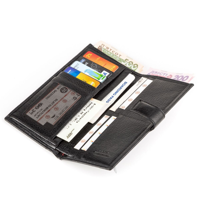 - 9 ячеек для банковских карт и одно прозрачное отделение для фото и документов;