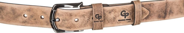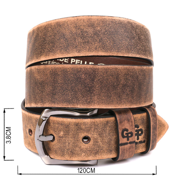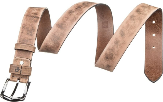 Оригинальный мужской ремень под джинсы. Аксессуар обладает винтажным стилем и потертостями, которые придают изделию изюминку. Цвет фурнитуры: темное серебро. Аксессуар надежно упакован в красивую коробочку от производителя. Кожаный джинсовый мужской ремень – это отличное решение для подарка мужчине к любому празднику.
