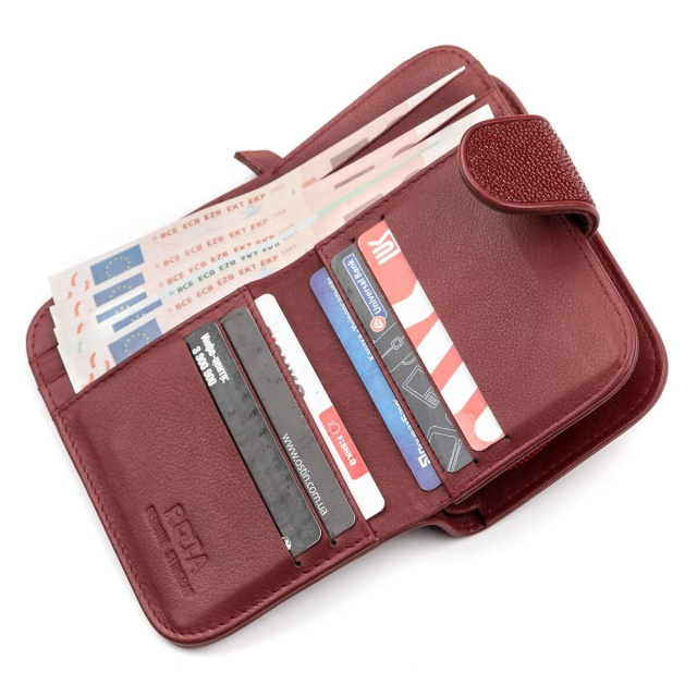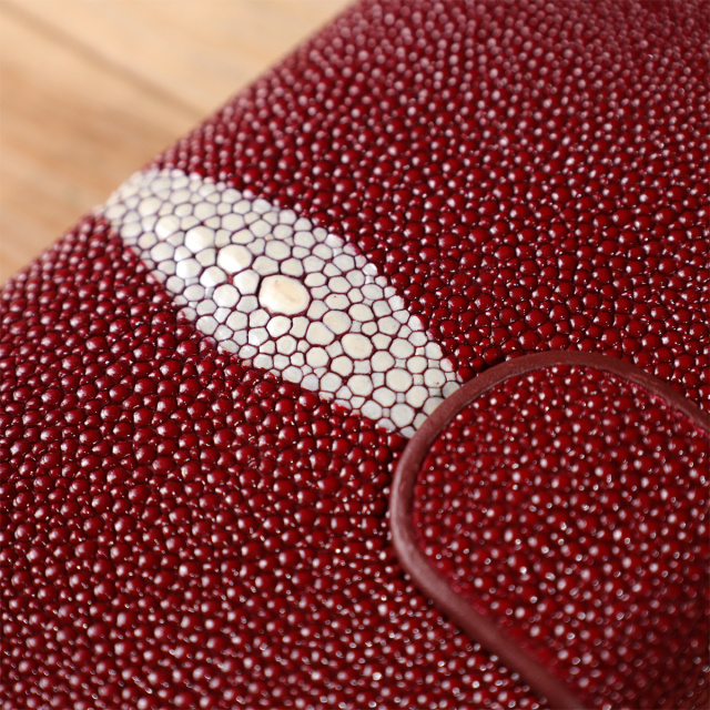 Оригинальный женский кошелек из натуральной кожи морского ската, которая обладает фантастической фактурой и красотой, а также очень стойкой к износу, проколам, порезам, к разрывам и даже к огню. Аксессуар обшит гладкой кожей под цвет изделия. Все пространство кожи покрыто сотнями мелких бугорков, разного размера, которые играют на свету, как небольшие бусинки. На лицевой поверхности кошелька, в виде украшения изделия расположен рисунок, белый глазок с более крупными бусинами. Изделия из кожи ската прослужат долгие годы, не теряя своего первоначального вида. Если Вы хотите приятно удивить близкого человека – подарите ему изделие из кожи морского ската.