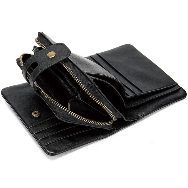 Плотный и функциональный кожаный кошелек. Разнообразию карманов такой модели можно только позавидовать. Бестселлер для всех кто любит носить в кошельки много мелочей. Кошелек не имеет большого размера и поместится в небольшую сумку. Кожа хорошего качества и прослужит вам не один год. Будет идеальным подарком для близкого человека.