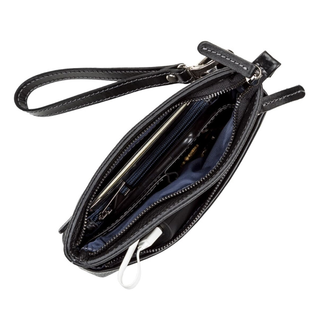 Материал: натуральная кожа; Размеры (ШхВхГ, см): 22х13х4; Цвет: черный; Страна производитель: Украина. Описание: - два больших отделения; -
