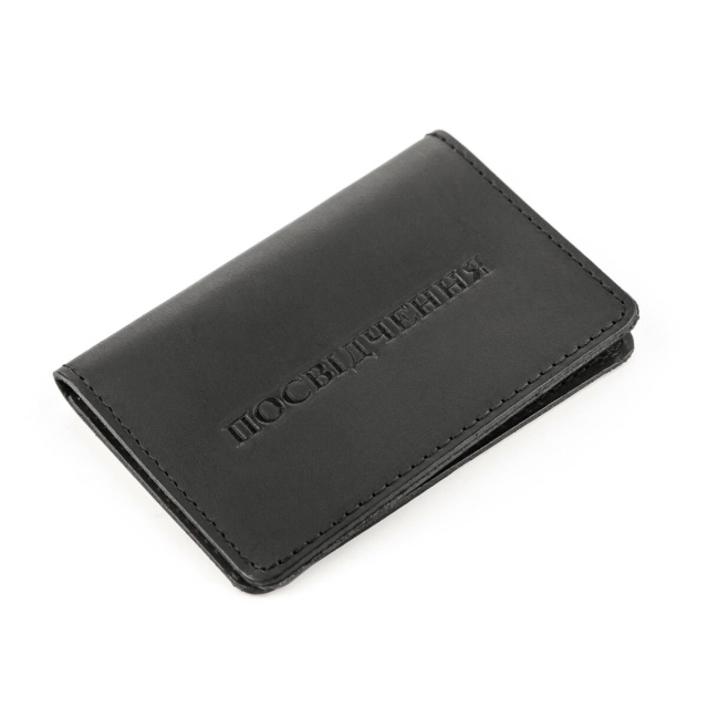 Компактная и практичная обложка для удостоверения, из винтажной натуральной кожи, характерными признаками которой являются потертости и неоднородность окраса.