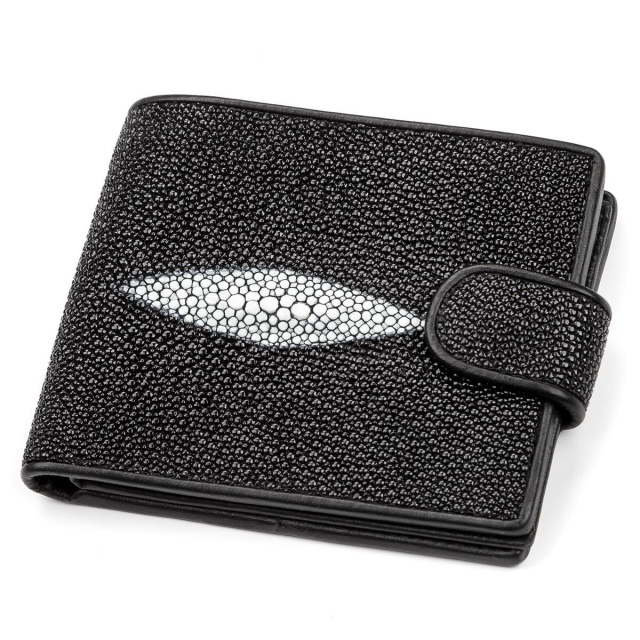 Надежный кошелек из натуральной кожи морского ската, очень стойкой к износу, проколам, порезам, к разрывам и даже к огню. Аксессуар обшит гладкой натуральной кожей под цвет изделия. На лицевой поверхности кошелька, в виде украшения изделия расположен рисунок, белый глазок с более крупными бусинами. Изделия из кожи ската прослужат долгие годы, не теряя своего первоначального вида.