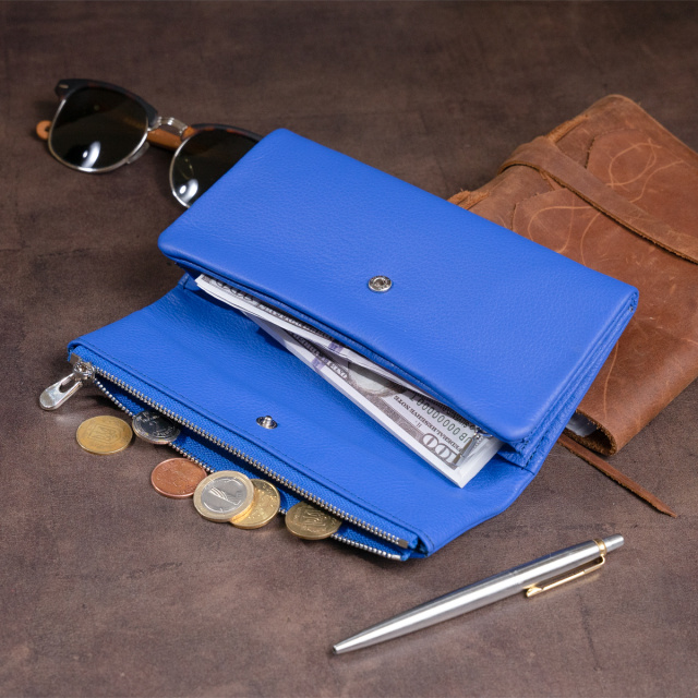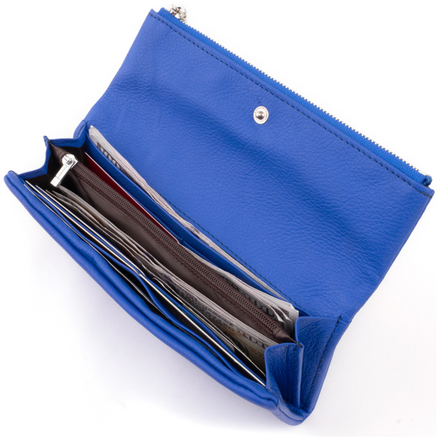 Новинка в нашем магазине! Клатч-конверт для настоящих практичных девушек. Вы будете в шоке от универсальности изделия. Дело в том, что крышка клатча имеет сплошной карман на молнии который легко поместит паспорт и ваш мобильный. То есть в такой клатч поместятся не только ваши карточки купюры, но и документы и мобильный. Выходит, что один маленький клатч конверт заменит вам и кошелек и вечернюю сумочку. Яркий синий цвет выглядит очень дорого и не оставит представительниц женского пола равнодушными. Мы уверены, что вы оцените данную модель. Натуральная кожа из которой выполнен клатч высочайшего качества, поэтому модель прослужит вам долго. В комплекте идет фирменная коробка. А это облегчит вашу задачу с упаковкой клатча, если вы выберете его в качестве подарка. Модель доступна в нашем магазине в нескольких цветах.