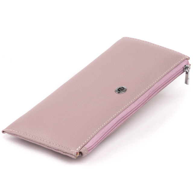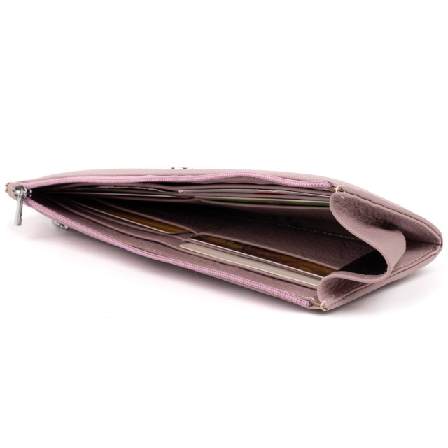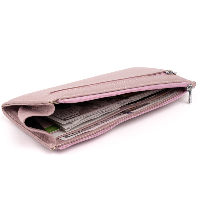 Качественный тонкий кошелек унисекс на молнии. Цвет кошелька оригинальный и неповторимый - лиловые. Кожа имеет естественную природную структуру. Мы уверены, что с покупкой нового кошелька наступят приятные изменения в жизни. Изделие подойдет для девушек, которые любят пастельные тона. Кошелек в таком цвете добавит вам легкости и стильности. Внутри кошелька просторные карманы для удобного размещения купюр, монет и кредиток. В сочетании с качественной фурнитурой изделие прослужит вам сравнительно долго. Подойдет кошелек в качестве подарка для девушки. Кошелек упакован в фирменную коробку от производителя.