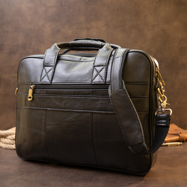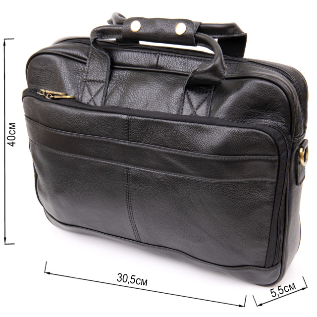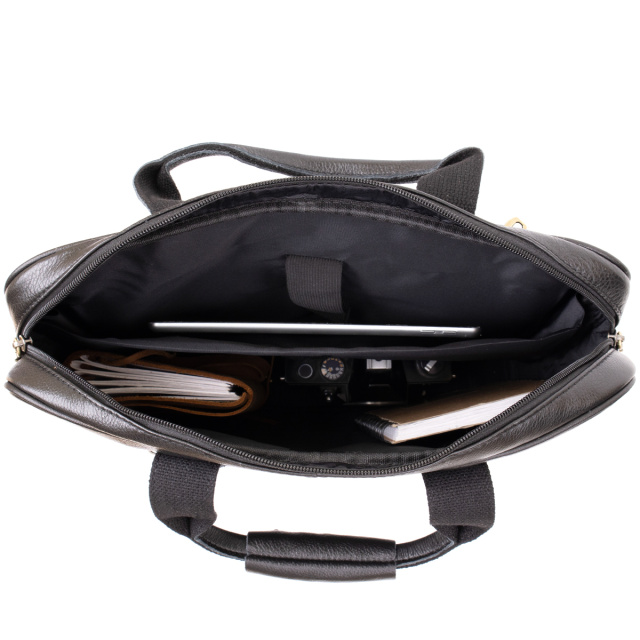 Солидная сумка делового человека. В сумку поместится ноутбук и другие документы или папки с деловыми бумагами. Изделие очень функциональное. Сумка выполнена в мягкой коже. Носить ее вы можете как в руках (ручки скрепляются накладкой с кнопками), так и на плече. Сумка совсем неприхотлива в уходе. Поверхность кожи имеет небольшую зернистость. В сочетании с качественной фурнитурой сумка прослужит вам очень долго и станет вашим идеальным помощником на встречах и совещаниях. Сумка станет лучшим подарком для любого делового мужчины.