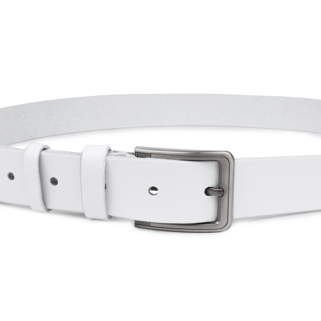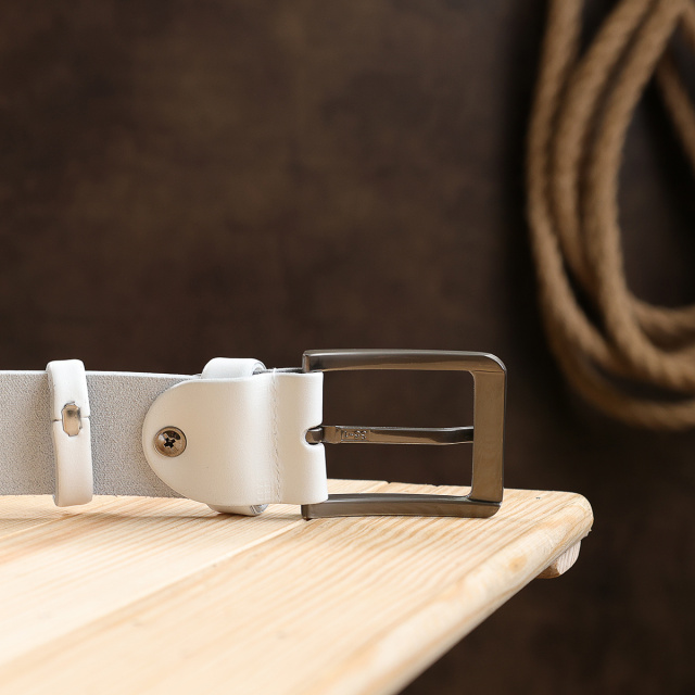 Замечательный мужской ремень в белом цвете с гладкой приятной на ощупь фактурой. Материал изготовления – натуральная высокопрочная кожа, качество которой на самом высоком уровне. Пряжка имеет лаконичный неброский дизайн и классический механизм. Такой ремень станет хорошим подарком дорогому человеку.