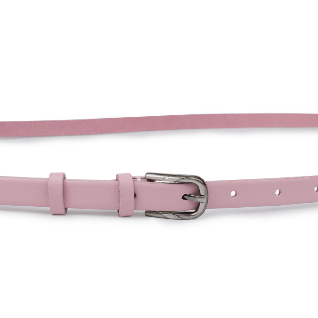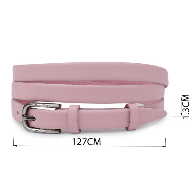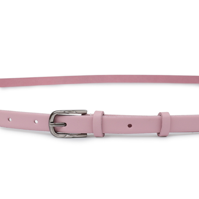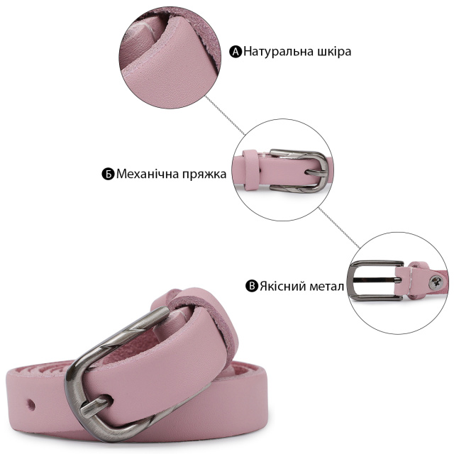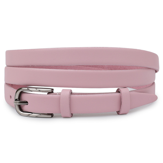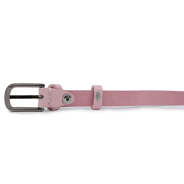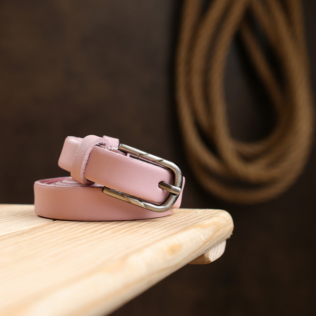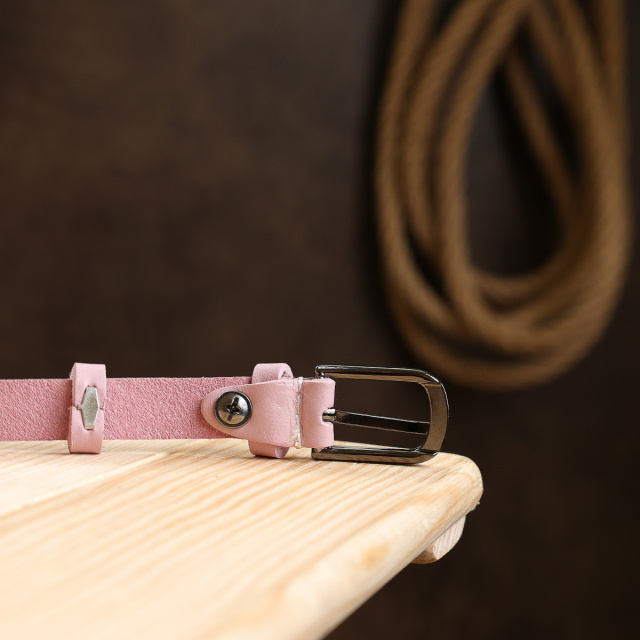 Красивый тонкий ремень для женщин в нежном розовом цвете, который можно применять в качестве акцента в любом образе. Имеет классическую пряжку и гладкую матовую фактуру. Выполнен из натуральной износоустойчивой кожи. Данная модель подойдет под брюки, юбки, платья и прочее.