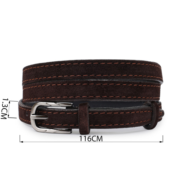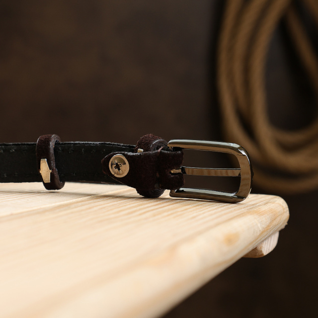 Замечательный стильный женский ремень в очень привлекательном шоколадном цвете. Гармонично дополнит Ваш образ и придаст ему выразительный акцент. Изготовлен ремень из высокопрочной натуральной кожи отличного качества. Пряжка – классическая, что очень удобно и практично.