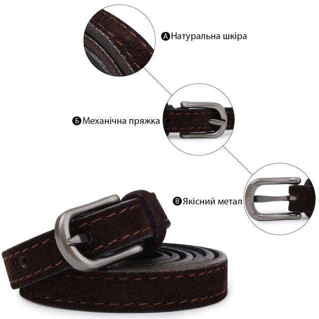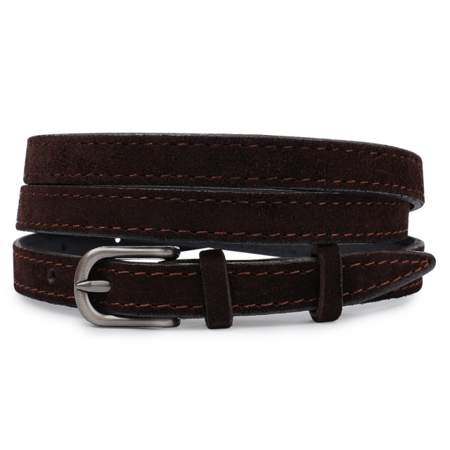 Замечательный стильный женский ремешок под брюки, юбку или платье. Материал изготовления – натуральная высокопрочная кожа с отменными эксплуатационными характеристиками. Ремень имеет очень красивый и стильный шоколадный цвет, что смотрится очень интересно и необычно.