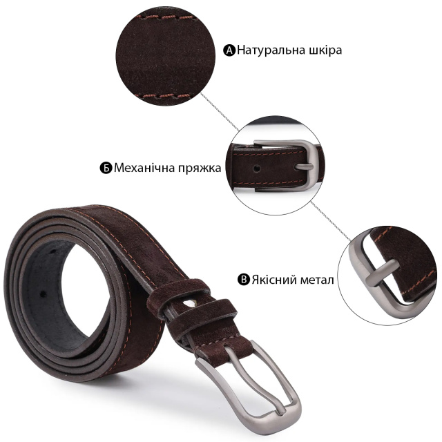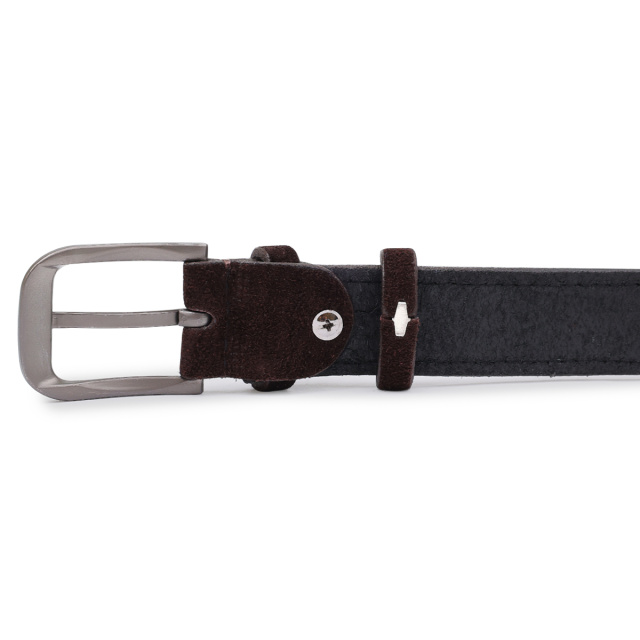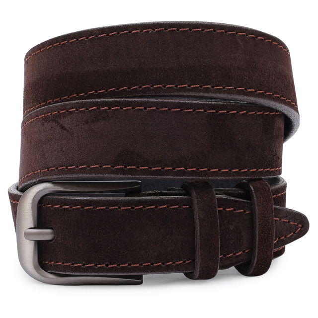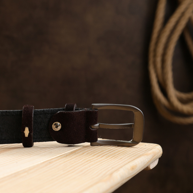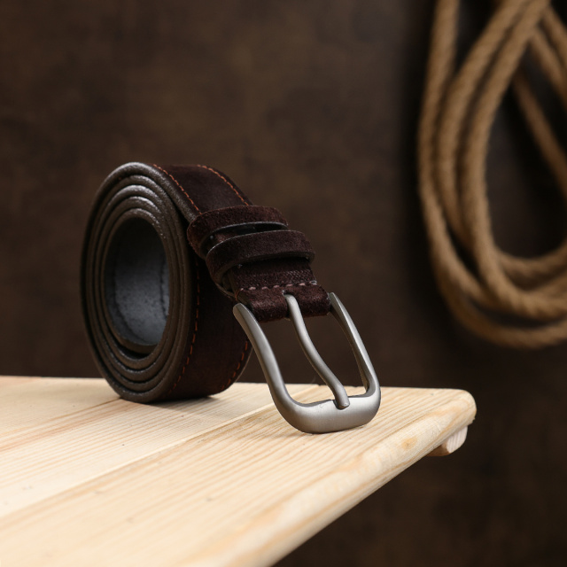 Модный и современный замшевый ремень в очень красивом темно-коричневом цвет с шоколадным оттенком, а по бокам идет строчка чуть светлее, что смотрится просто шикарно. Материал изготовления – натуральная высококачественная кожа с отменными эксплуатационными характеристиками. Такой ремень – просто находка для Вашего гардероба.
