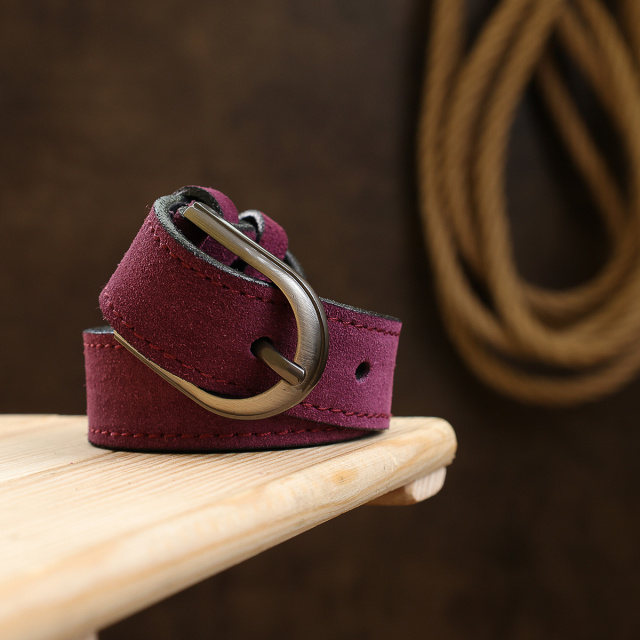 Превосходный женский замшевый ремень в изумительно красивом фиолетовом цвете. Имеет классическую пряжку и приятную фактуру. Такой ремень, несомненно, станет выразительным акцентов любого образа. Материал изготовления – натуральная износоустойчивая кожа. Для подарка любимой женщине лучшего ремня просто не найти!