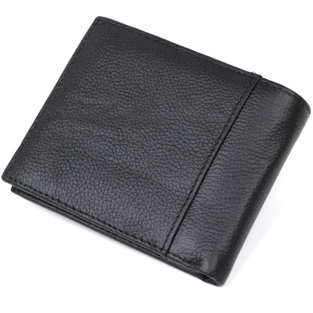 Компактное мужское портмоне из натуральной высококлассной кожи с отменными характеристиками эксплуатации. Имеет вместительные отделения для купюр, слоты для кредитных и визитных карт, а также небольшую монетницу на кнопке. Такой кошелек легко поместится в сумке или кармане. Цвет изделия – черный, фактура – матовая.