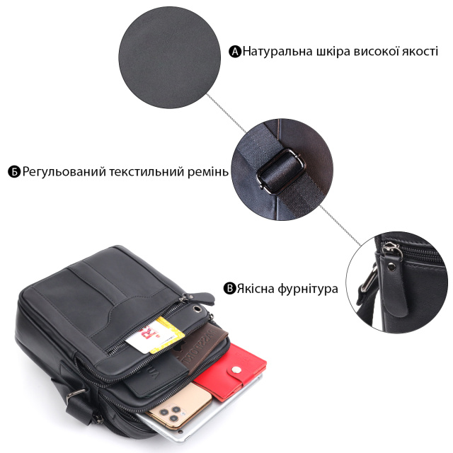 Практичная мужская сумка компактного размера из натуральной кожи. В сумку с легкостью поместятся все самые необходимые вещи. С такой сумкой будет удобно ходить на работу или встречи. Дополнено изделие качественной фурнитурой. Сумка станет прекрасным подарком для близкого человека.