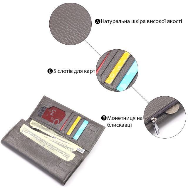 Превосходный женский кошелек горизонтального типа изготовлен из высококачественной натуральной кожи. Стильный аксессуар который имеет множество отделений внутри, закрывается клапаном на магниты. Такой кошелек из натуральной кожи - это идеальный вариант на каждый день для тех, кто ценит качество, удобство и комфорт, а также будет отлично дополнять Ваш повседневный образ.