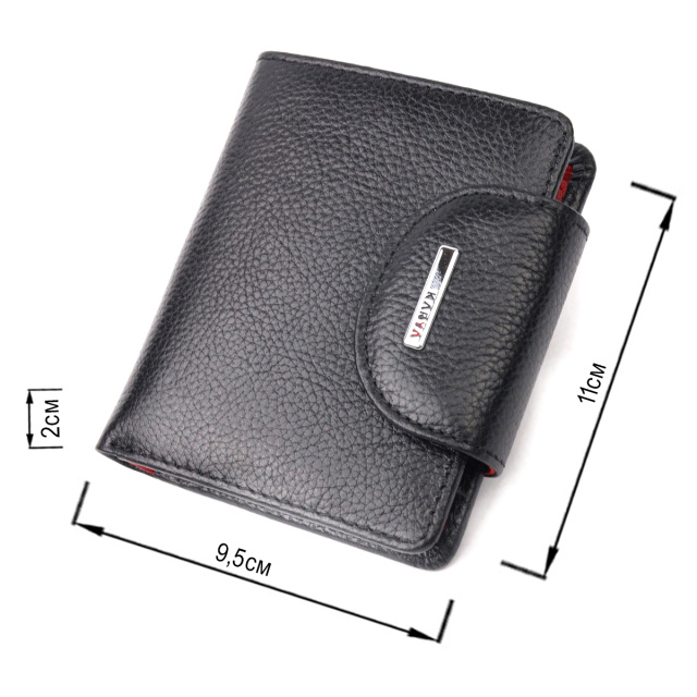 Классический женский кошелек из натуральной кожи черный снаружи и красный внутри. Складывается аксессуар пополам, закрывается клапаном на кнопку. Качественная фурнитура дополняет и украшает изделие. Такой кошелек из натуральной кожи - это идеальный вариант на каждый день для тех, кто ценит качество, удобство и комфорт, а также будет отлично дополнять Ваш повседневный образ. Упакован аксессуар в фирменную коробку и пакет бренда. Изделия из натуральной кожи всегда будут отличным подарком для близкого человека.