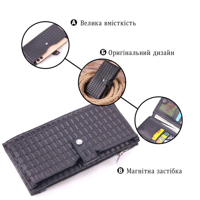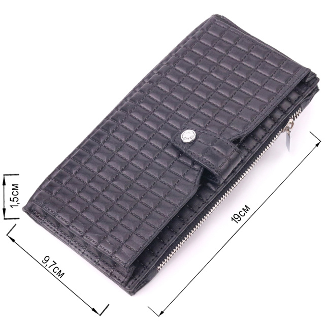 Стеганый бумажник из натуральной кожи, в классическом черном цвете. Кошелек состоит из одного глубокого отделения, четырех прилегающих карманов, двенадцати ячеек для карт, отделения под сеточкой, отделения на молнии снаружи и отделения для телефона, что закрывается хлястиком на кнопку. В изделиях этого элитного турецкого бренда всегда используются самые качественные кожаные материалы и фурнитура. Аксессуар упакован в фирменную коробочку. Кожаное изделие всегда будет прекрасным подарком для любого мужчины.