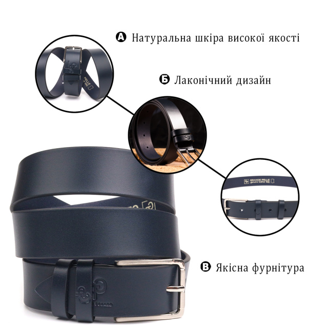 Стильный кожаный брючный ремень синего цвета из натуральной итальянской кожи, от украинского производителя. Хороший ремень способен идеально завершить образ и подчеркнуть ваш статус. Ремень изготовлен из цельного полотна кожи. Аксессуар имеет гладкую фактуру, аккуратно пошит, длина регулируется в меньшую сторону. Дополнен ремешок серебристой пряжкой с закругленными углами. Кожаный ремешок один из самых удачных и нужных подарков для любого мужчины.