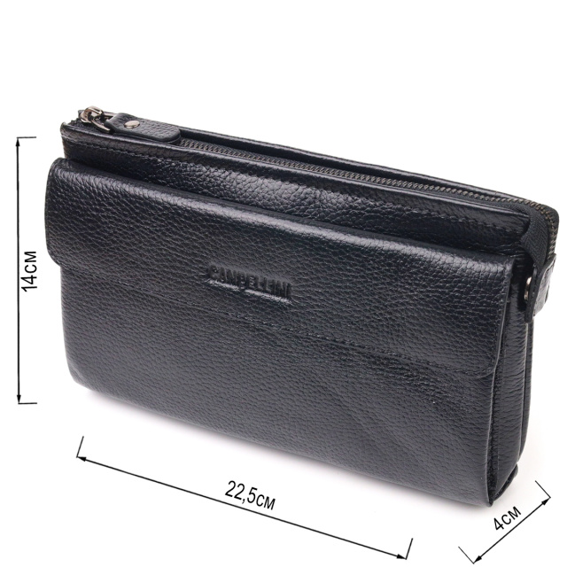 - снаружи на тыльной стороне мужского клатча расположена ручка для переноса в руке;
