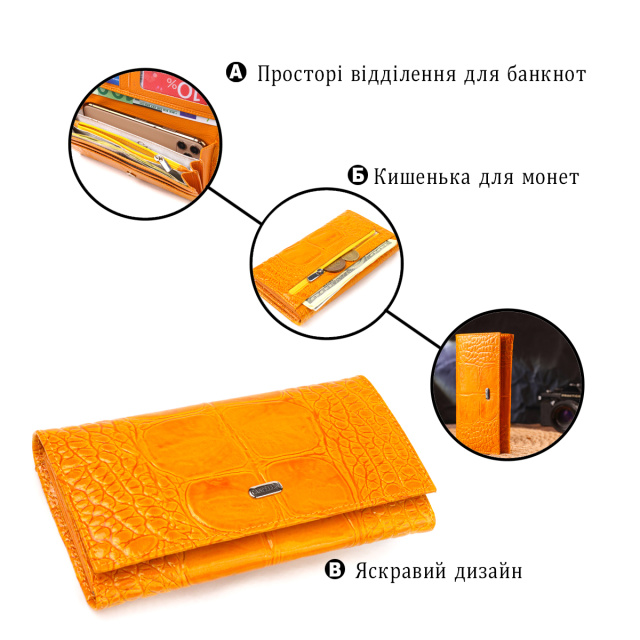 Молодежный кошелек, из натуральной фактурной кожи, с тиснением под крокодила. Аксессуар имеет три широких отделения для купюр, с двумя перегородками, одна перегородка закрывается на молнию, вместительную монетницу снаружи, четыре скрытых кармана и шесть карманов для карточек. Закрывается аксессуар клапаном на кнопку. Если Вы хотите порадовать и себя и удивить близких, то непеременно покупайте кожаные аксессуары в нашем магазине, качество и цена Вас однозначно порадует.