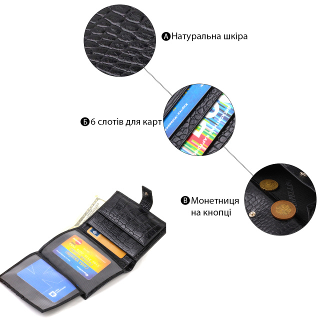 - монетница, что закрывается клапаном на кнопку;