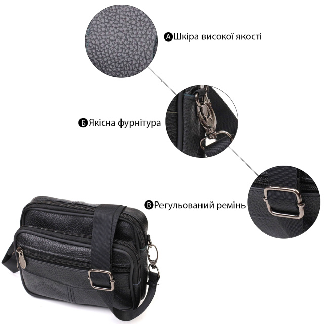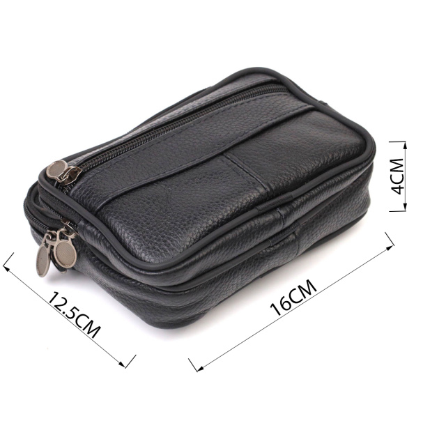 Горизонтальная мужская сумка на пояс, небольшого размера из натуральной кожи. Аксессуар отлично подойдет как для работы, так и в дорогу. Сумка состоит из основного отделения, что закрывается на молнию и двух карманов снаружи, они также закрываются молниями. Носить сумку можно на поясе, есть специальная кожаная петелька с тыльной стороны, а также в комплекте идет съемный текстильный плечевой ремешок. Модель очень практичная и универсальная. Изделие станет прекрасным подарком для любого мужчины.