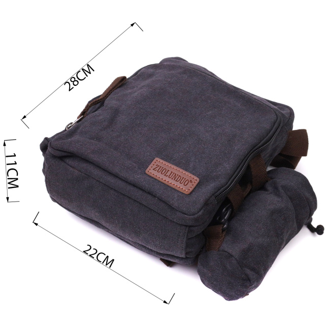 Функциональная мужская сумка из добротного текстиля, на три отделения. Изделие имеет более чем достаточно количество разных карманов, надежный текстильный регулируемый плечевой ремень, а также фишку этой сумки - съемный тканевый чехол для воды. Сумку можно носить на плече и через плече, она очень легкая и удобная. Такая сумка будет идеальным вариантом на каждый день. Модель действительно очень практичная и универсальная.