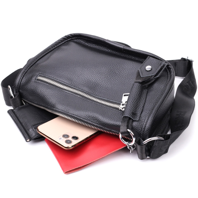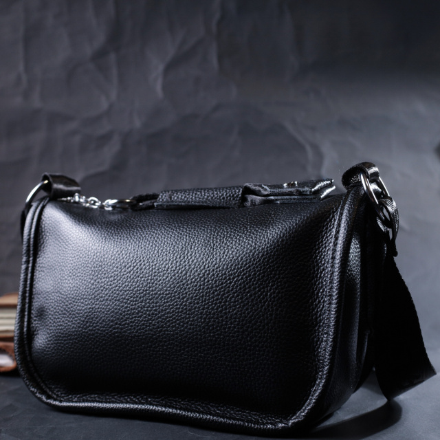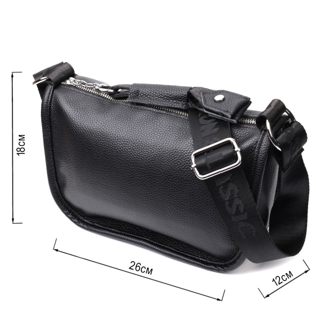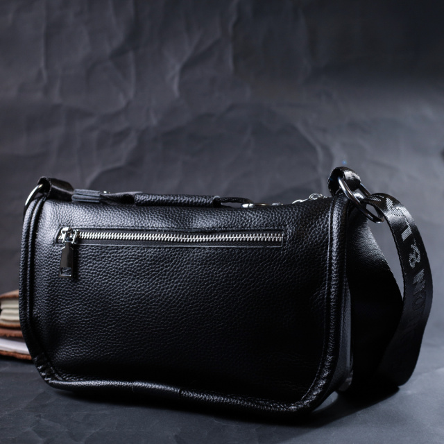 Женская полукруглая сумка из натуральной кожи с высоким показателем качества и износостойкости. Аксессуар состоит из основного отделения, что закрывается на молнию, внутри которого находится потайной карман на молнии и карман открытого типа, а также карман на молнии на тыльной стороне снаружи. Носить сумку можно на плече, для этого имеется несъемный регулируемый текстильный ремень. В изделии использована качественная фурнитура серебряного цвета.