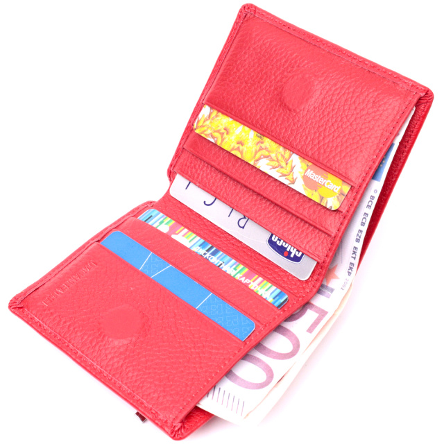 Яркий женский кошелек небольшого размера из натуральной кожи высочайшего качества. Аксессуар состоит из одного вместительного отделения для купюр, кармана на молнии через всю длину, шести ячеек для карт, двух скрытых карманов и наружного кармана на молнии, что отлично прослужит для монет. Портмоне дополнено надежной фурнитурой и крепкой подкладкой. Укомплектован кошелек в фирменную картонную коробку белого цвета. Изделие станет идеальным подарком для девушки любого возраста.