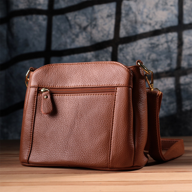 Оригинальная сумка для женщин небольшого размера на одно основное отделения из натуральной кожи флотар, прошитая светлой нитью по краям и накрест на лицевой стороне. В аксессуаре использована качественная фурнитура цвета желтого золота. Отличный вариант сумки для женщин, которые любят качественные и стильные вещи.