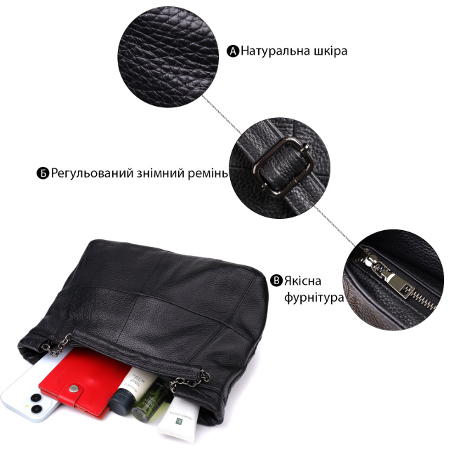 Эта чёрная кожаная сумка от бренда Vintage — идеальный выбор для женщин, которые ценят универсальность, стиль и практичность в одном аксессуаре.