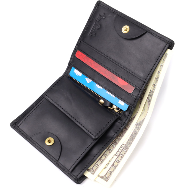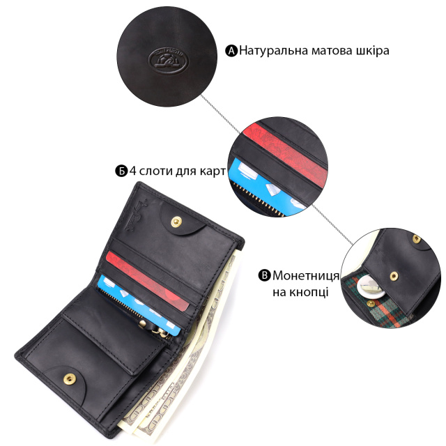 - удобная организация: одно отделение, четыре слота для карт, монетница на кнопке и вертикальный карман на молнии;